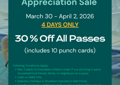 Public Swim: Gather your friends and family and make a splash during our public swim times at the Bonnyville Swimming Pool. For safety, all children 8 and under must have an adult (18+) in the water with them, within arm’s reach. Kids aged 9 and up can enjoy the swim on their own. The slide, diving board, and sauna will all be open for your enjoyment.