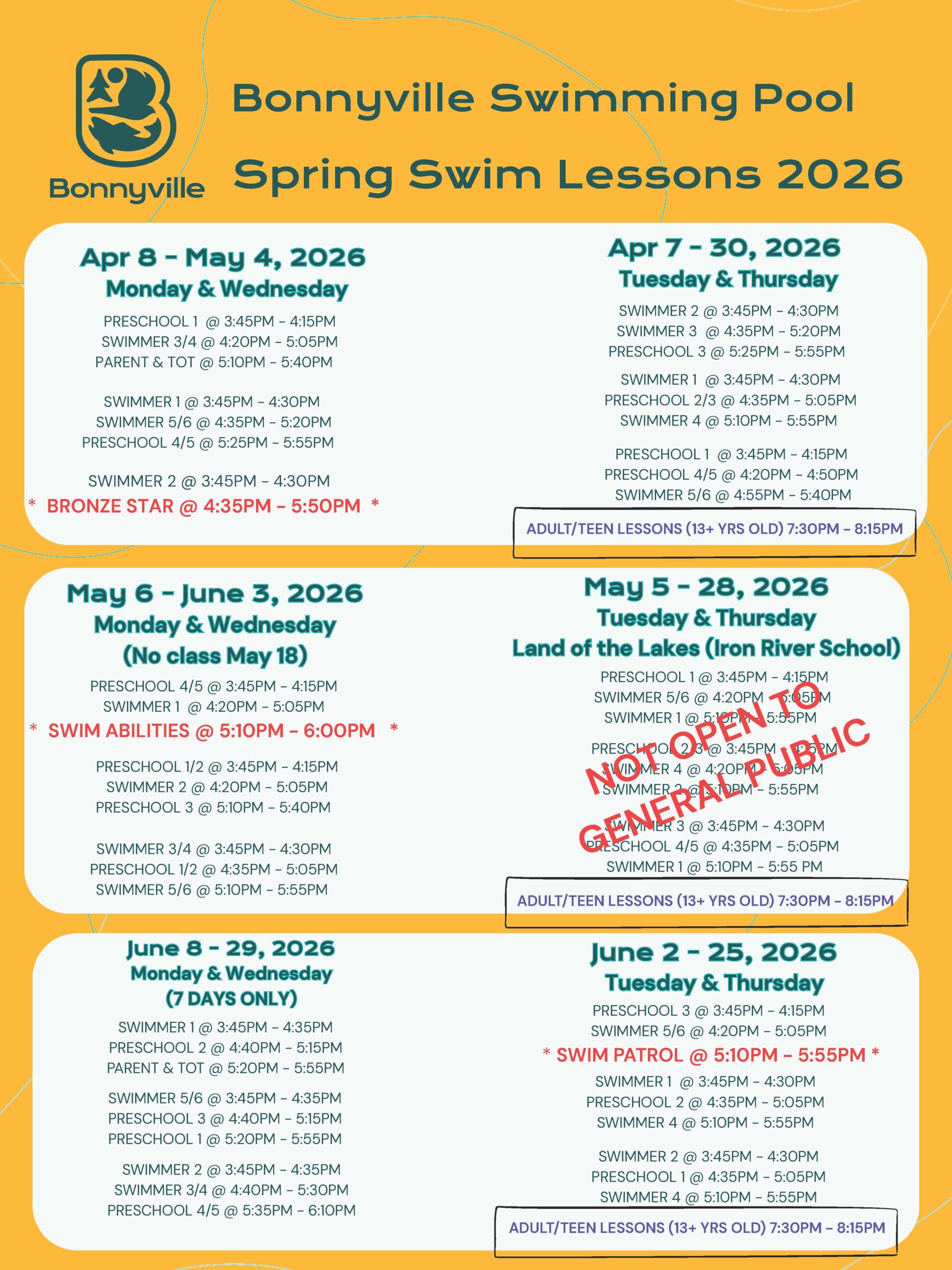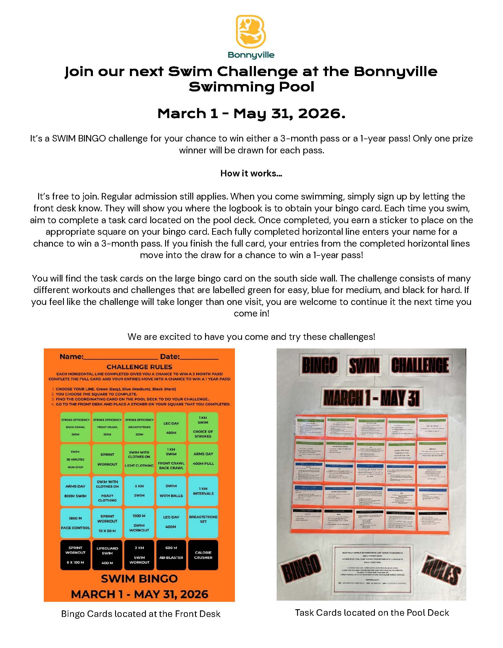 - Registration will be completed in person at the Bonnyville Swimming Pool.
